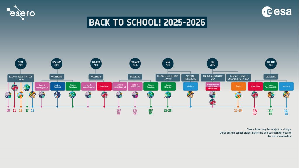 Începând din septembrie 2025, ESA, împreună cu rețeaua ESERO, relansează înscrierea în cele cinci proiecte școlare gândite pentru a inspira elevii: